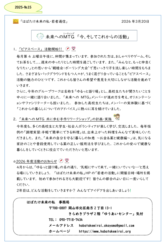 この度、「はばたけ未来の私」のホームページに「未来へのМTG」を掲載することが決定しました!!